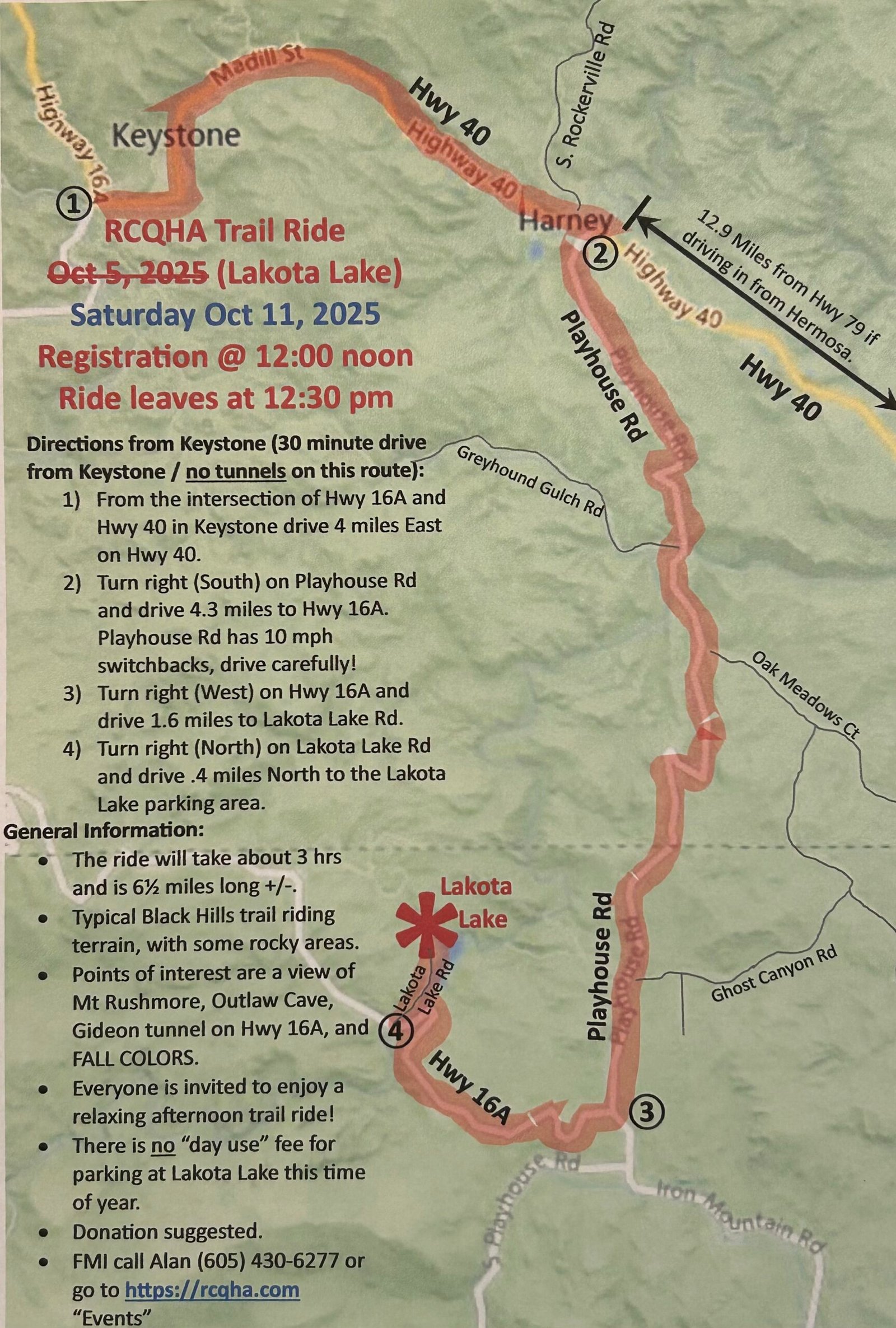 This year’s ride starts at Lakota Lake and will take a 6.5 +/- mile route past popular sights like Mt. Rushmore, Outlaw Cave and the Gideon Tunnel on 16A with the added bonus of the beautiful fall foliage.